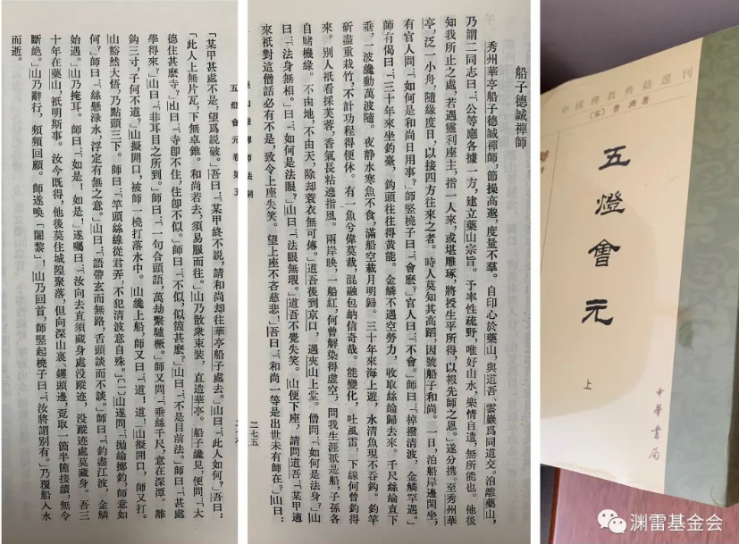 说起来船子和尚和国学大师苏渊雷冥冥中还颇有缘份。苏渊雷先生晚年一直致力于佛学特别是禅宗的研究,而其最重要的一项文化成果就是点校了禅宗三大经典之一的《五灯会元》。《五灯会元》中较为完整的记载了船子和尚在金山朱泾传道授业的事迹,是研究船子和尚的重要历史文献资料。活动现场,苏渊雷之女苏月笑特意准备了一套钤有苏渊雷先生常用印章的《五灯会元》赠送给金山东林寺为本次沙龙留念。